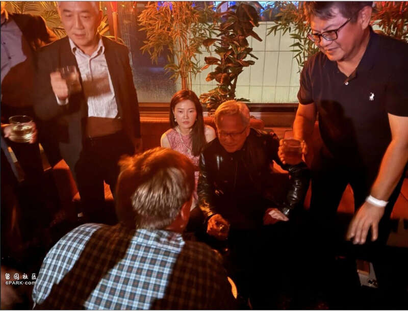 黄乐发出邀请后不久,黄仁勋便身着标志性的黑色皮夹克现身,与众人共饮威士忌。一位接近英伟达的人士表示,黄仁勋还带来了另外两名英伟达高管,且原本就计划出席这场聚会。