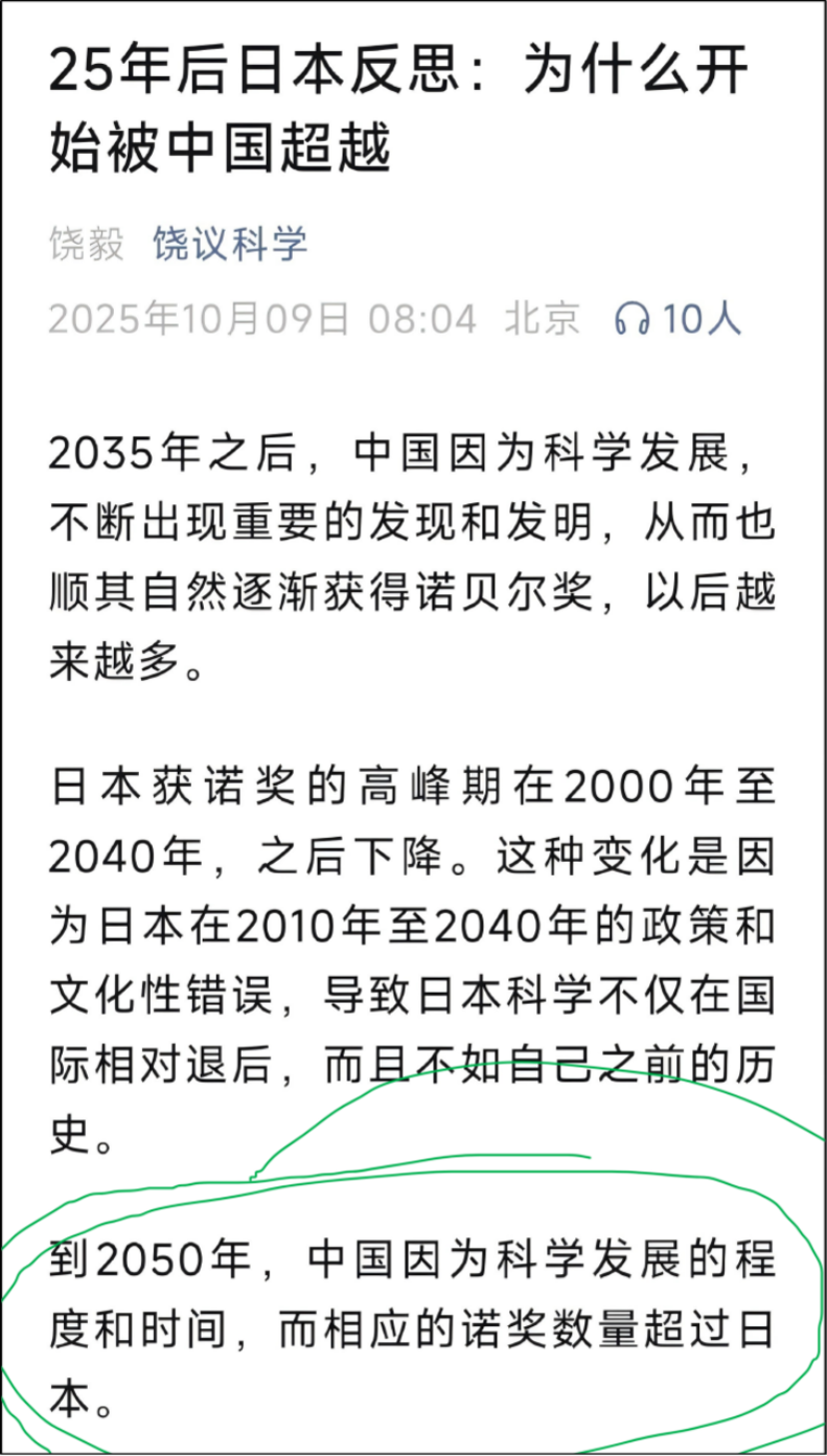 著名生物学家饶毅最近写文章表示,25年后的中国诺奖数量将赶超日本。