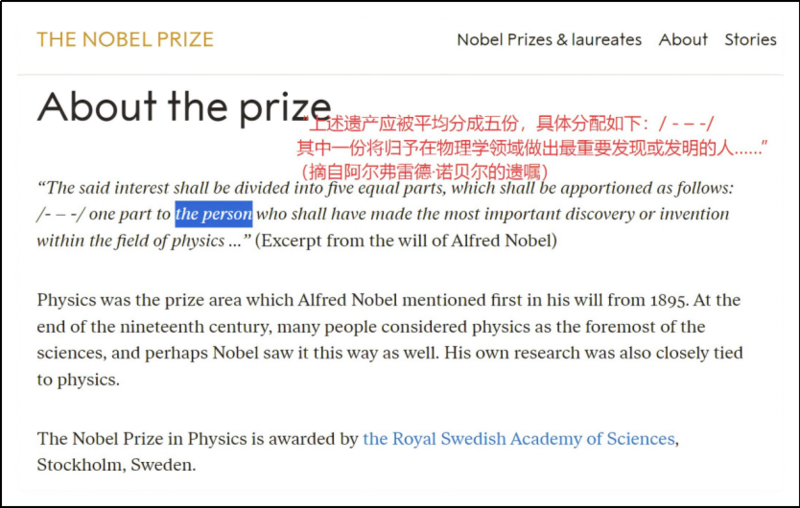 这点写在了阿尔弗雷德·诺贝尔的遗嘱里,也是每次大家关心具体颁给谁的原因。(上面我们也提到过颁奖理由)