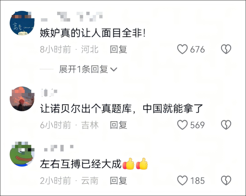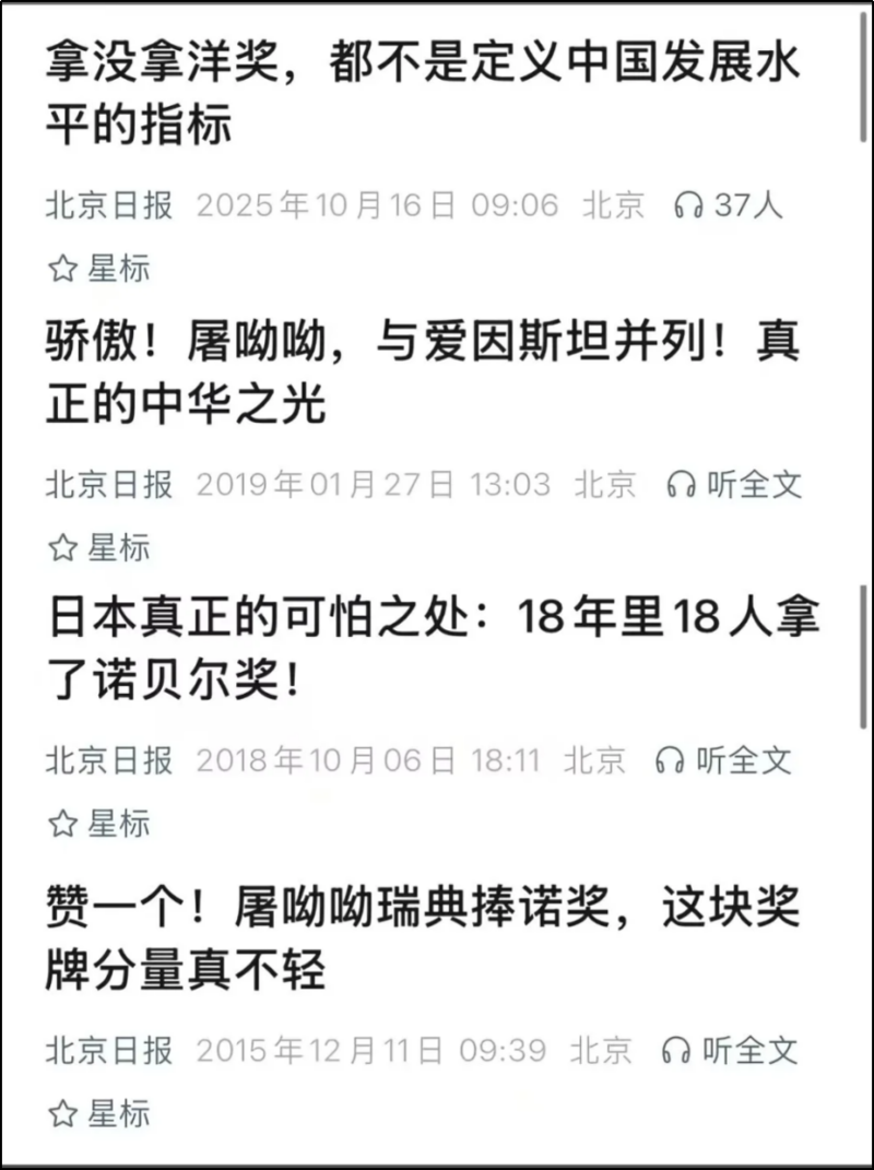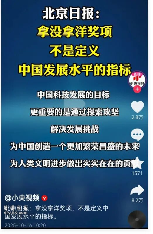 无论是抖音、知乎、还是小红书上,都觉得北京日报是吃不到葡萄说葡萄酸了,嫉妒别的国家拿诺奖拿得多。
