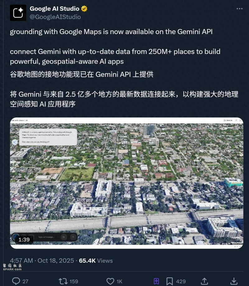 谷歌这回整了个大活儿!即日起,所有开发者可通过Gemini API调用谷歌地图工具,以便轻松将位置感知功能整合进其应用中。简单粗暴地说,现在但凡你的应用跟“位置”沾边,Gemini都能立刻调用谷歌地图那套庞大的地理数据库——2.5亿个地点全给它接通了。