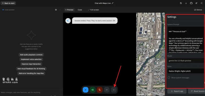 目前,所有人都能去谷歌AI Studio体验这项新功能。而且打开设置面板,我们还能根据自己的需要切换不同的模型和语音,甚至右侧还能看到系统提示词。