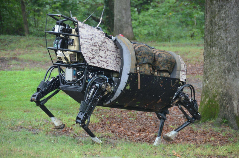 这个略显粗糙的机器人,能够在相对复杂的路况上平稳行走,军方寄希望于其能够为士兵背负重物。