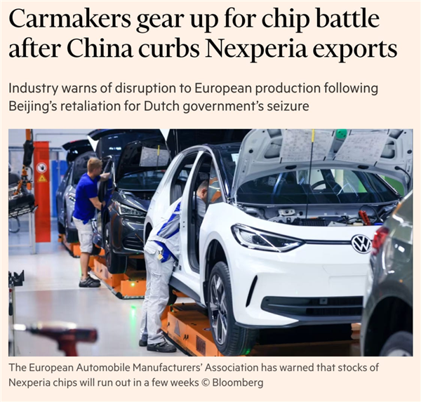 欧洲汽车制造商协会(ACEA)直接站出来警告,说大家的芯片库存可能几周内就耗尽,生产线随时可能停摆。大众、宝马、奔驰这些这帮车企估计这会儿正对着荷兰政府骂娘呢:哥们正忙着搞电动化转型,最缺的就是芯片,你们倒好,为了抱美国大腿,直接把大家饭碗给砸了?