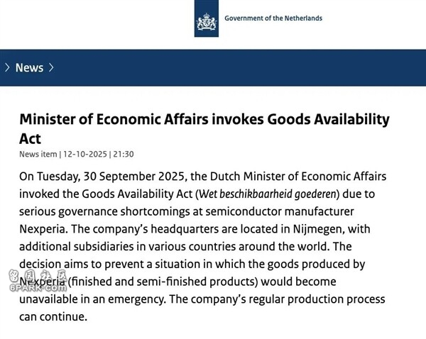 完事跟这个前后脚,第二天荷兰人也发了个公告,说根据 《货物可用性法》,“荷兰及欧洲本土关键技术知识与能力的连续性和安全性面临威胁”,所以要gank安世。