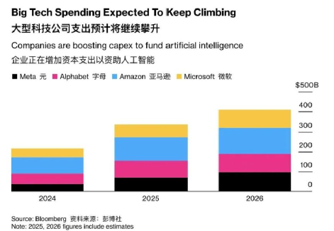 从彭博社披露的数据来看,美国的各大科技巨头,仍在为各自的AI业务不断输血。