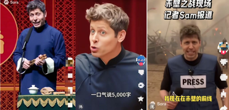 新手玩家们用Sora2让猫咪开赛车、拖拉机,老选手已经把奥特曼的虚拟形象带到中国,让他在各大视频网站上说相声、搞穿越。