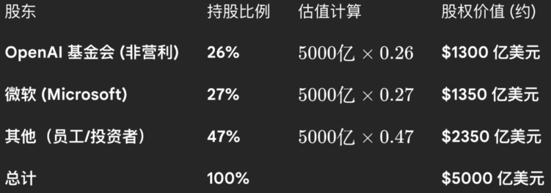 OpenAI 现有股东持股比例 来源:极客公园制图