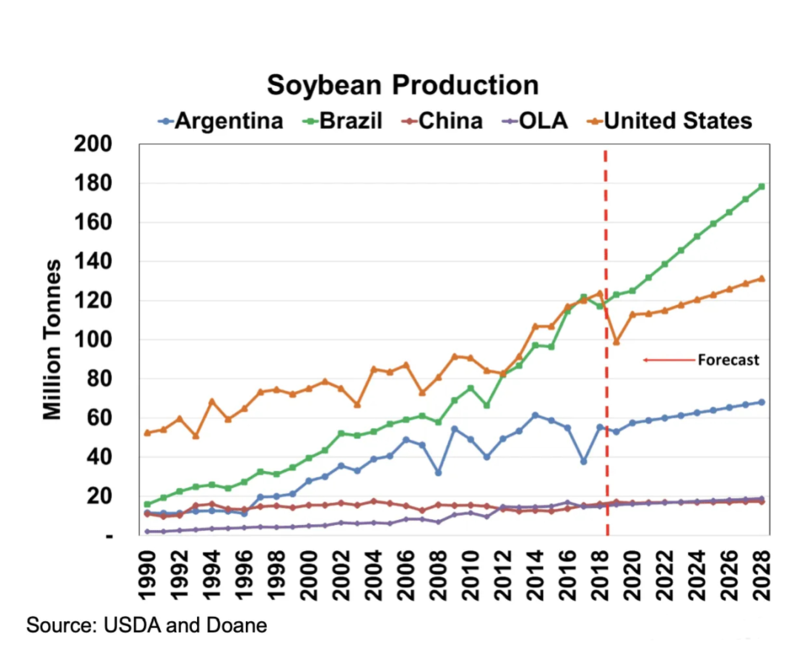 本质上来说,巴西、美国的大豆生意,就是充当中国的饲料基地!
