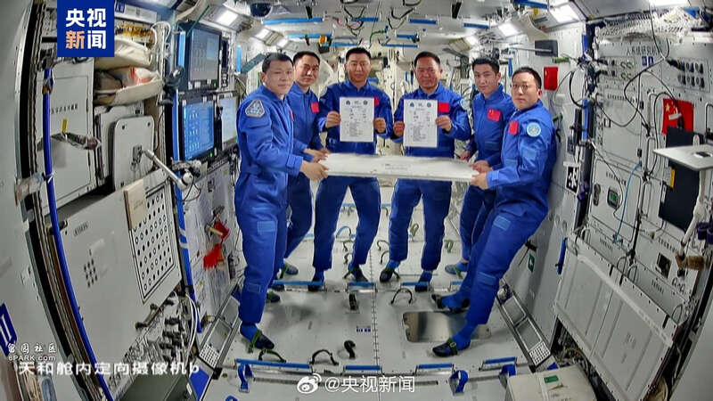 眼下天宫空间站里可热闹了。神舟二十号和神舟二十一号两艘飞船同时挂在空间站上,六个航天员挤在一块儿。神舟二十一号的张陆、武飞、张洪章11月1日刚到,按原计划要跟老乘组交接几天工作,然后神舟二十号的三位就回家。现在返回推迟了,六个人得多相处一阵子。不过空间站的生命保障系统本来就是按六人设计的,食品、水、氧气储备都够,即使睡觉的地方也是足够充裕的。