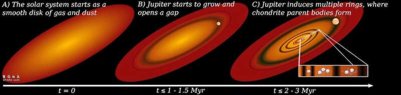 根据Rice大学团队的新理论,木星在太阳系早期极其迅速地形成,并在此过程中向内迁移,在接近太阳后如帆船转向一般驶回到现今位置。这一运动不仅在尘埃和气体环中打开了一个缺口,还有效地将内侧行星隔离出来,使其轨道变得稳定,避免了坠入太阳的厄运。