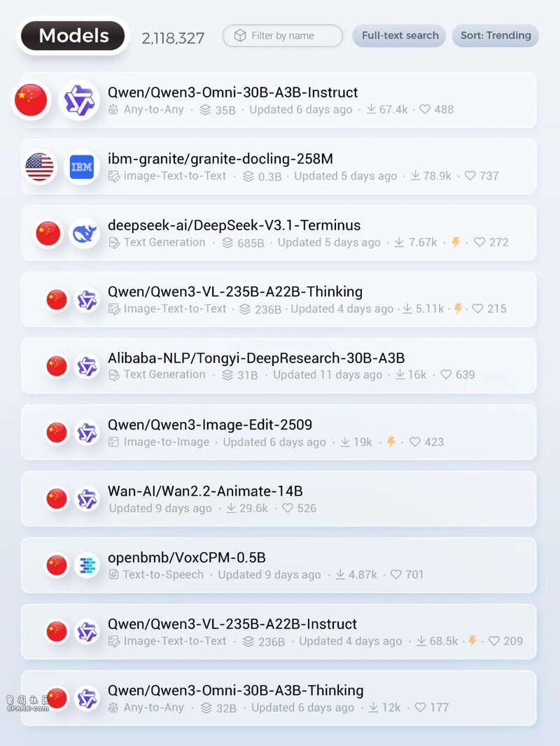 北京时间10月29日凌晨,黄仁勋在2025 GTC 大会上发表主旨演讲时称, 2025年以来,来自中国的阿里通义千问Qwen已占据开源模型的大部分市场份额,并且领先优势还在持续扩大中。