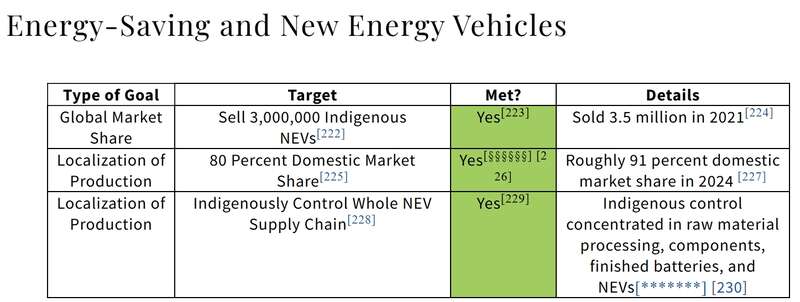 USCC评估称,中国“提前且超额”完成“节能与新能源汽车”领域所有目标。