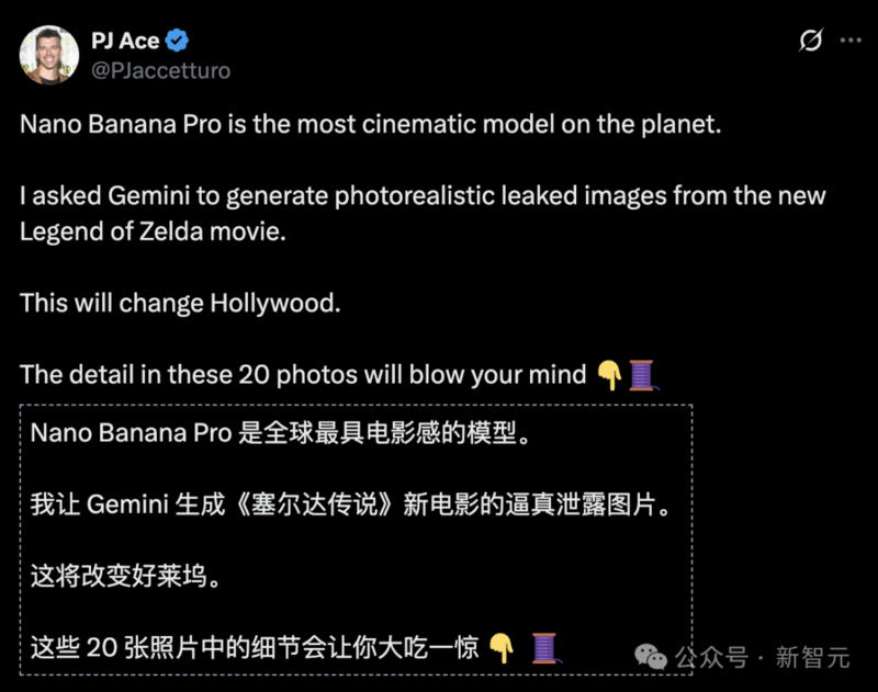 致力于AI视频的PJ Ace直言,「Nano Banana Pro堪称地球最强影像级生成模型」。