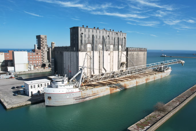 在加拿大安大略省科尔伯恩港,有一条沿伊利湖延伸的湖滨路 。当你驾车向东行驶,远方一座巨大的谷物码头会闯入你的视野,它高耸于树木和屋顶之上,显得格外大 。